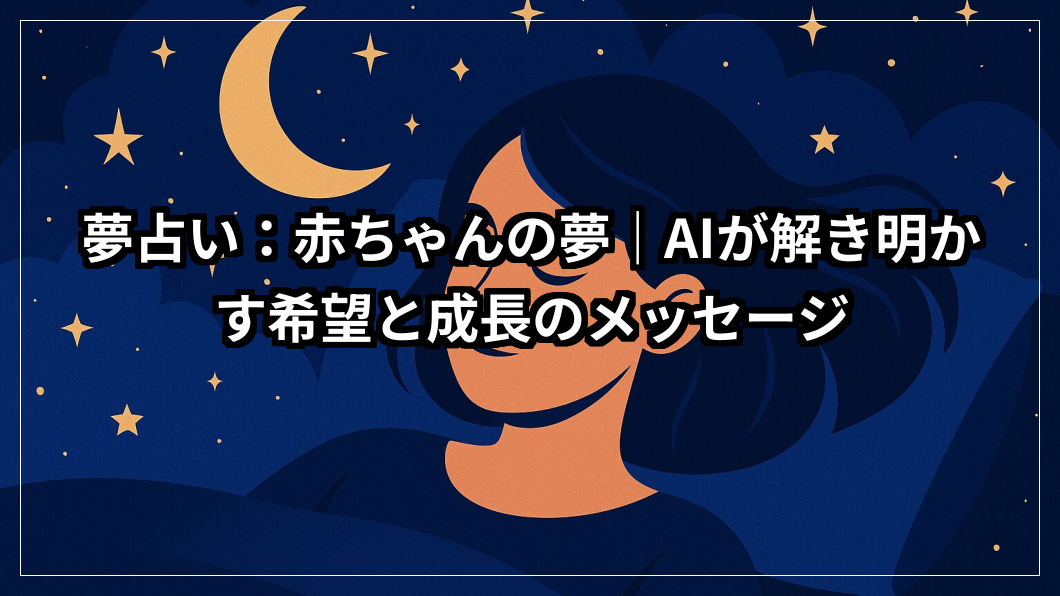 「赤ちゃんの夢を見たんだけど、どんな意味があるの?」――そんなふうに不安や期待を抱えて検索する方はとても多いです。赤ちゃんは希望・成長・新しい始まりの象徴である一方で、夢の中では責任や不安、守るべきものの存在を示している場合もあります。特に女性にとって「赤ちゃんの夢」は心に強い印象を残すことが多く、喜びのメッセージか、それとも心の中の不安の表れか、気になるものですよね。この夢占いでは「赤ちゃんを抱く」「泣く」「笑う」などのシーン別はもちろん、「お腹に赤ちゃんがいる(妊娠の夢)」についても寄り添いながら解説します。きっと、あなたの心に今必要なメッセージが見つかるはずです。