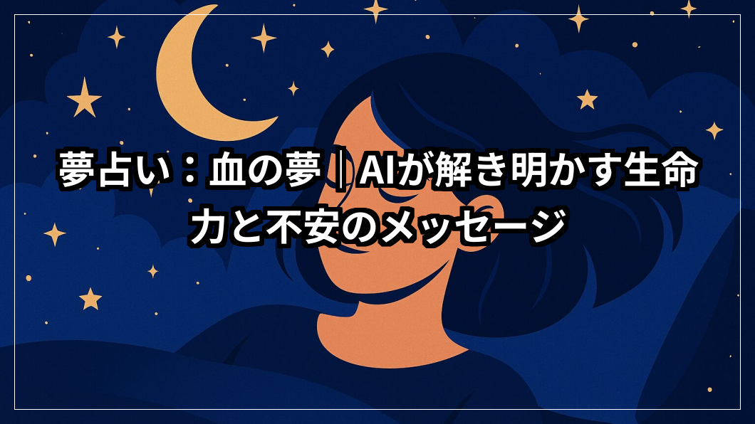 血の夢は一見ショッキングで不安を覚えるものですが、実際には生命力・絆・浄化・再生といった多様な意味を持っています。出血や血まみれの夢が不安を映すこともあれば、血が止まる夢は回復や安心を告げるサインとなります。