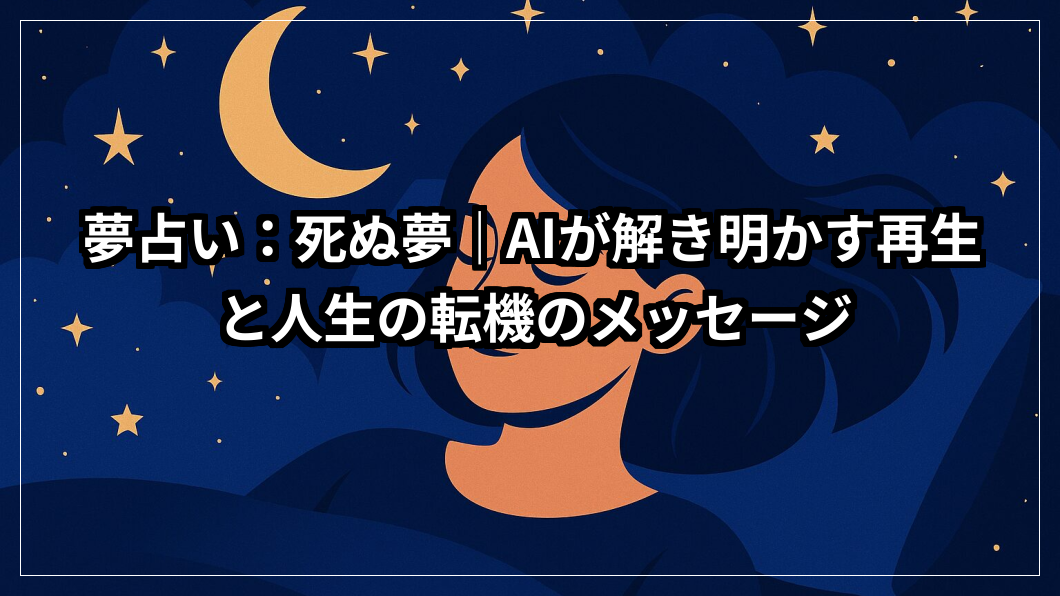 この記事では、死ぬ夢が象徴する基本的な意味から、家族や恋人、友人など状況ごとの解釈までを丁寧に解説します。夢を通じて心が伝えようとしているメッセージを受け取り、安心と前進のヒントにつなげていただければ幸いです。