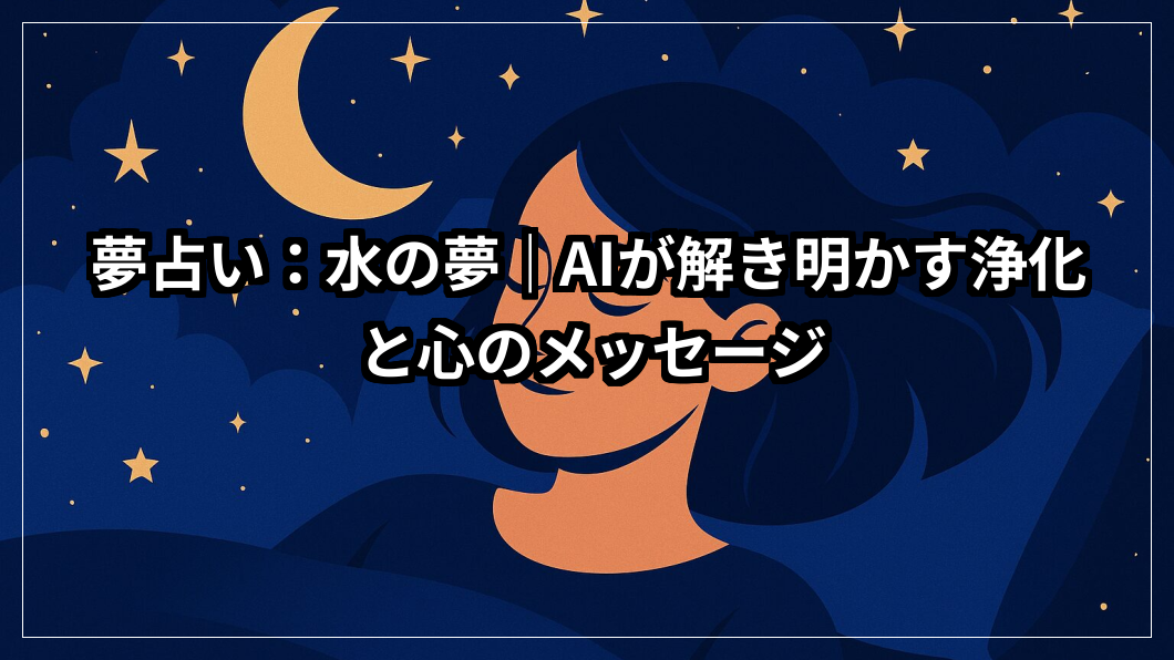 「水の夢」は、心や潜在意識の状態を映す鏡です。澄んだ水は浄化・癒し、濁った水は不安や停滞。静かな湖は安定、流れる川は前進、荒れる海や洪水は感情の高ぶりや警告を示すことがあります。夢占いとしての解釈は、水の色・透明度・勢い・触れ方で変わります。本記事では、AIが状況別にやさしく解説し、見た夢を日常の安心と行動へつなげるヒントをお届けします。