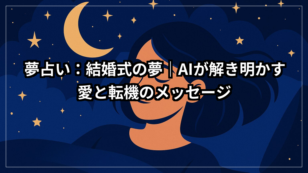 「結婚式の夢を見たけど、どんな意味があるの?」――多くの人が検索する人気の夢のひとつです。結婚式は人生の大きな節目を象徴する出来事。夢に現れたとき、それは愛や人間関係の変化、あるいは人生の新しいステージへのサインかもしれません。一方で、緊張や不安を伴う夢であれば、あなたが責任やプレッシャーを感じていることを映し出している場合もあります。この記事では、自分が花嫁や花婿になる夢から、元恋人や知らない人と結婚する夢まで、シーン別に寄り添いながら解説します。きっと今のあなたに必要なメッセージが見つかるはずです。